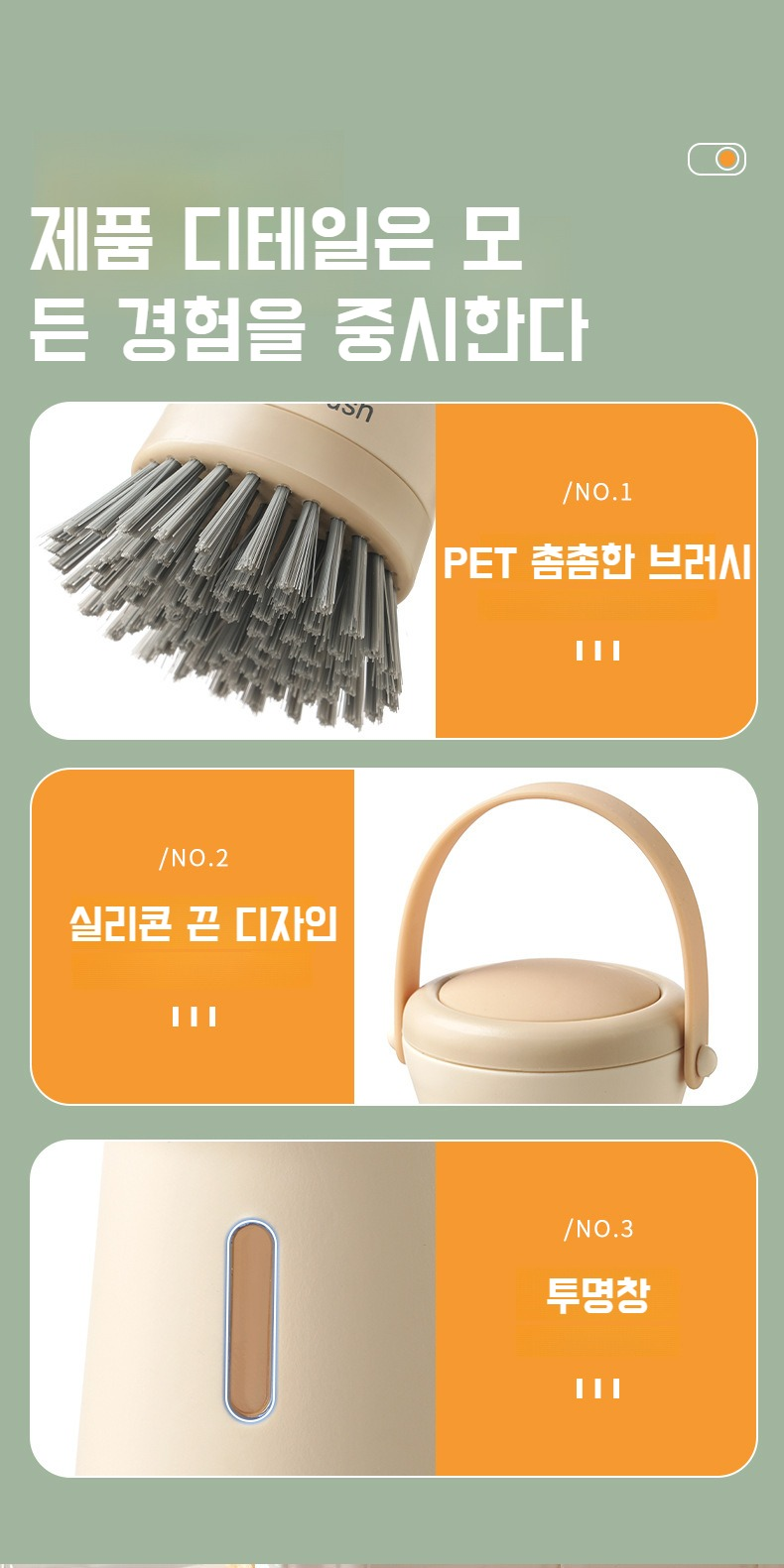 주방 오염제거에 특화된 세척솔 디자인